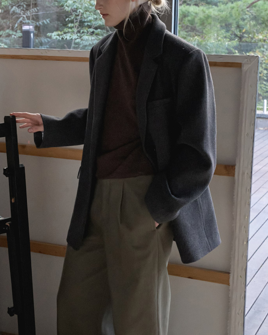- 싱글 투버튼 디자인으로 미니멀하고 단정한 무드를 연출합니다