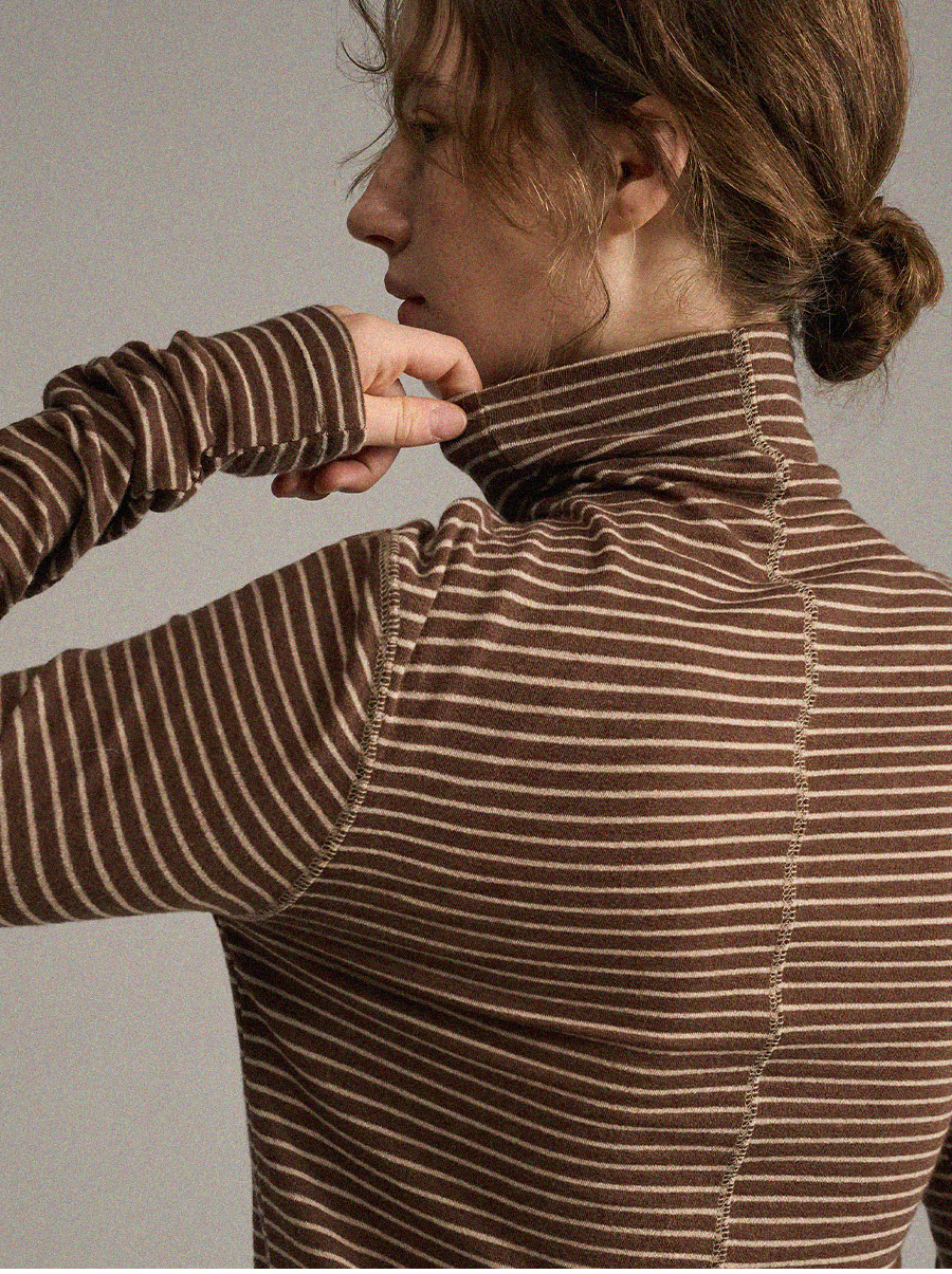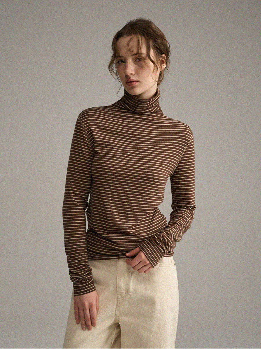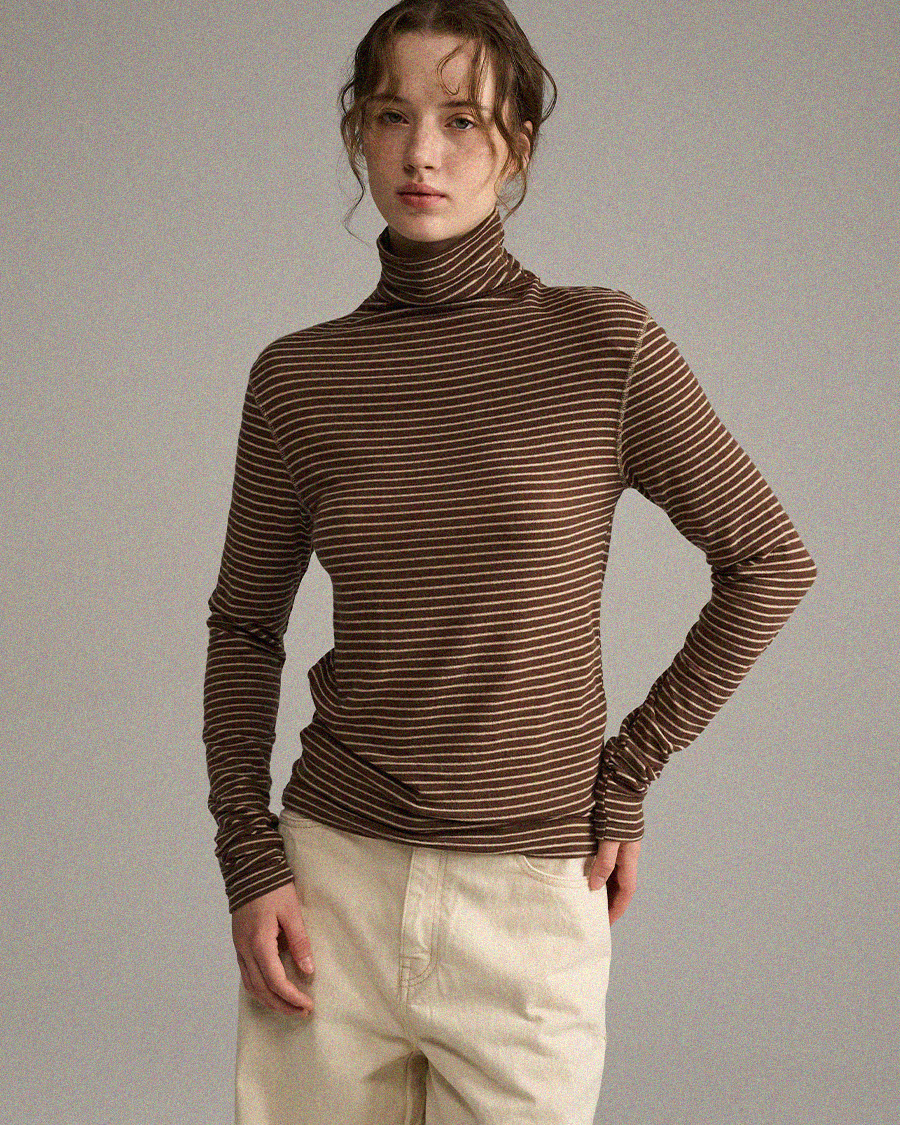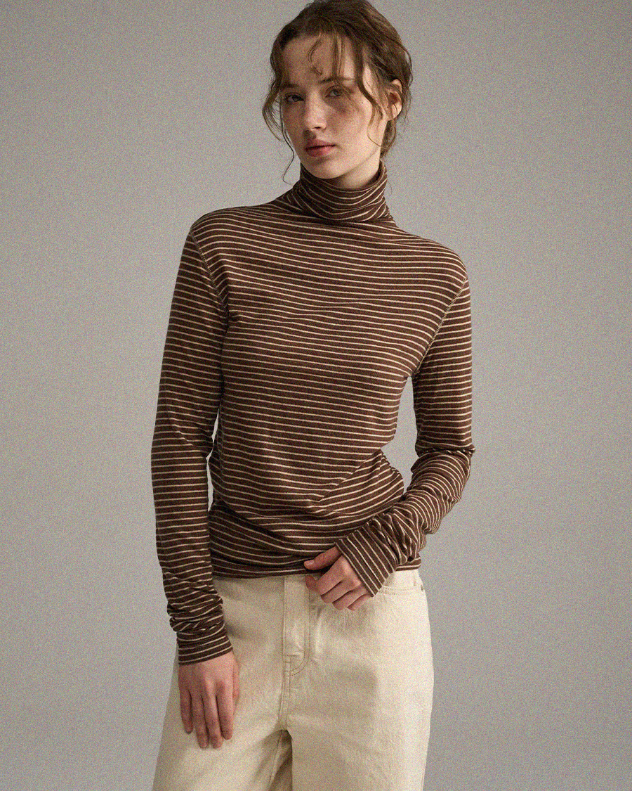 - 스트라이프 패턴으로 캐주얼하면서도 클래식한 무드를 연출해주는 터틀넥 입니다