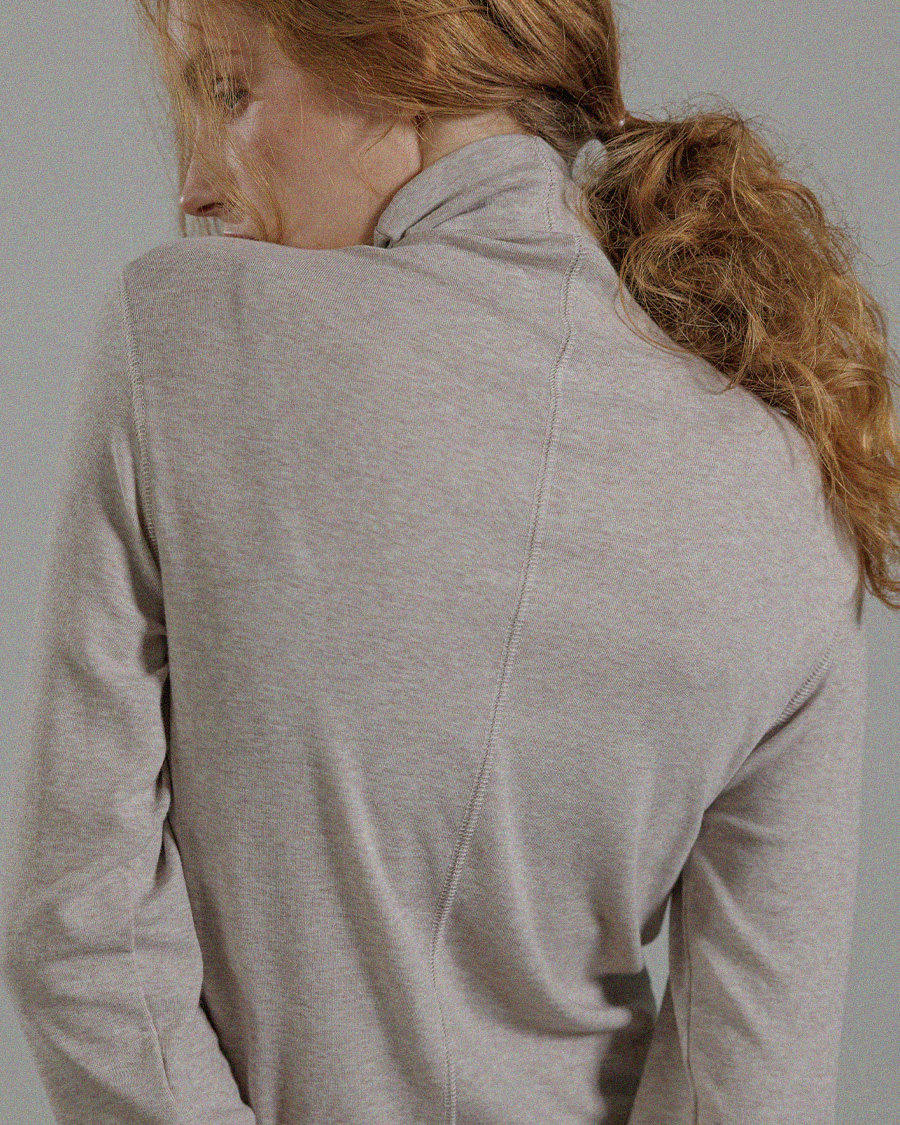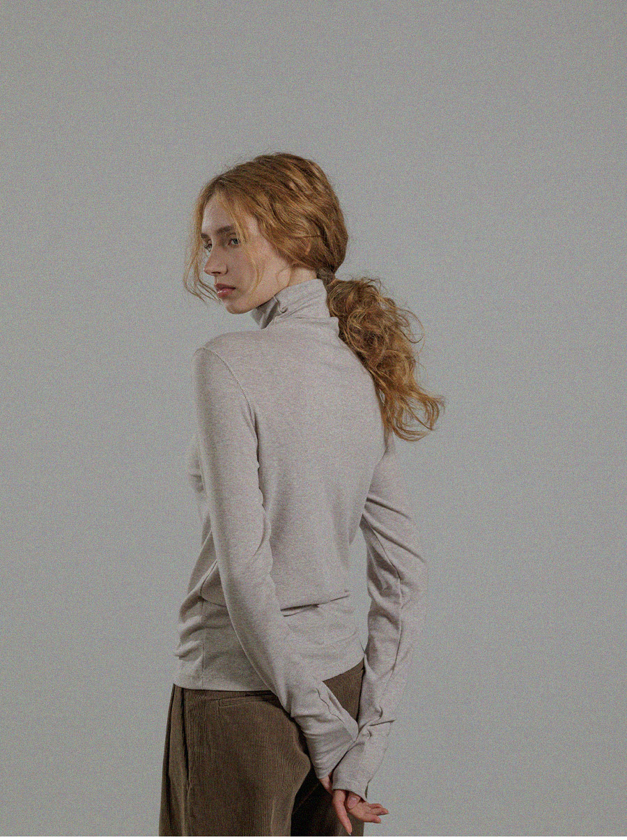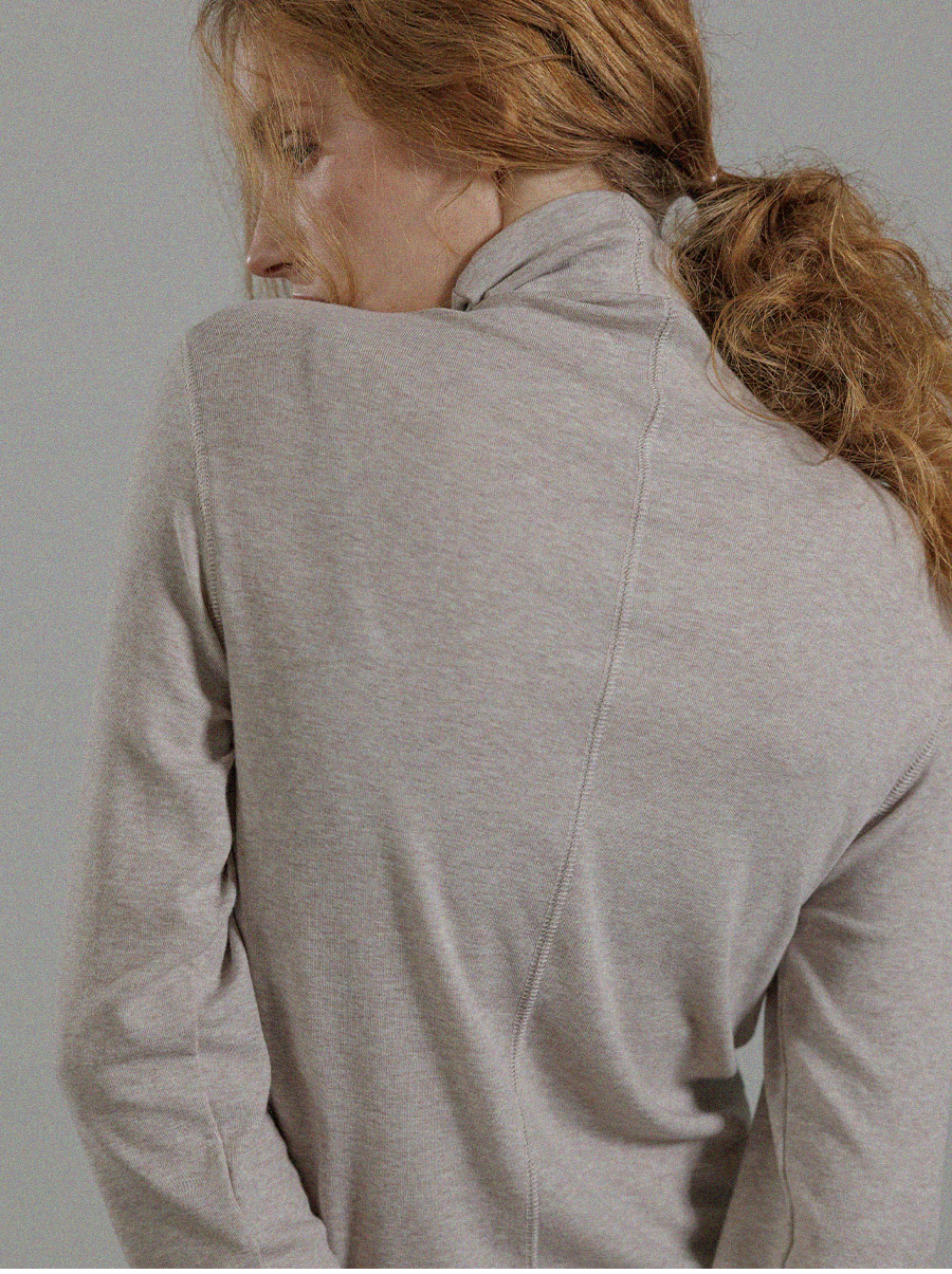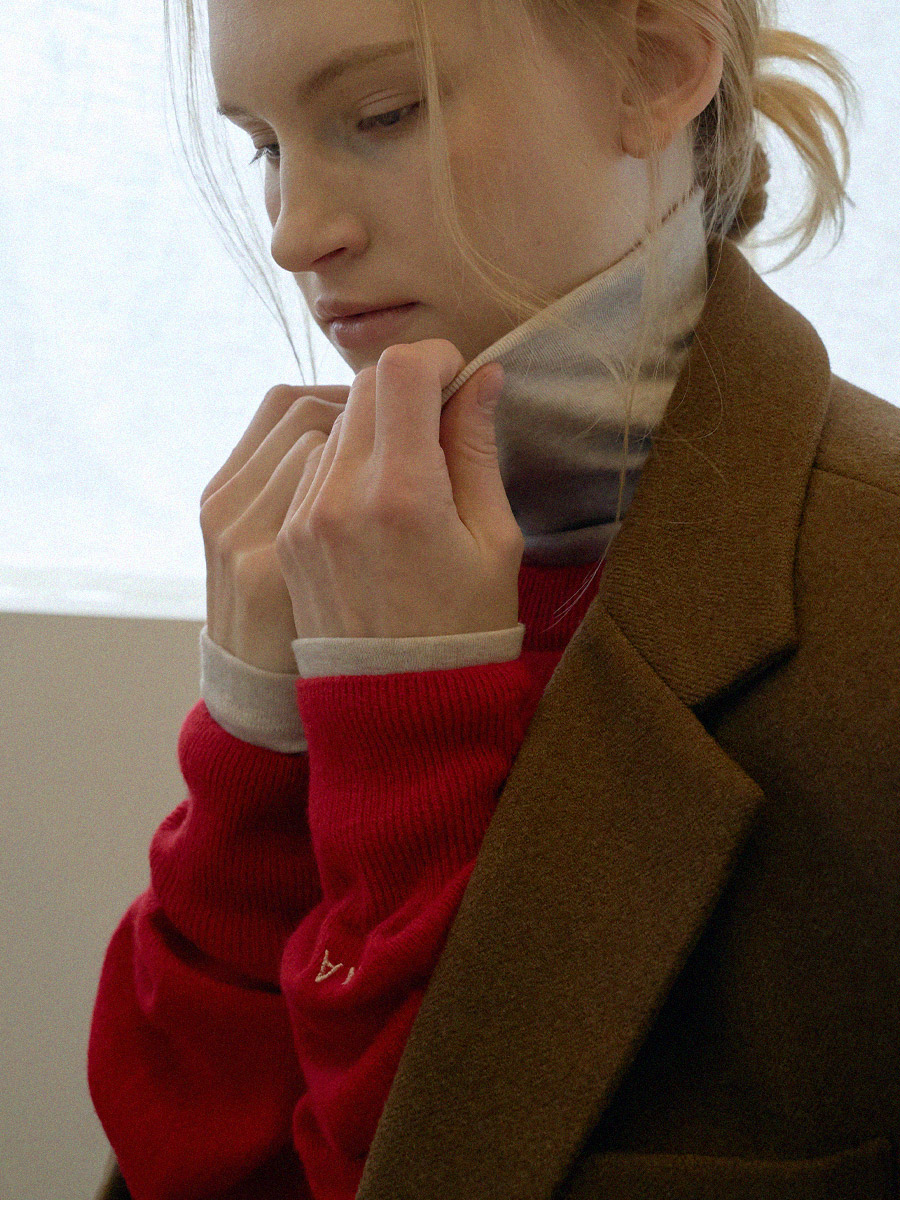 -폴라 안쪽은 컷오프 마감 처리 방식으로 원단끝을 접지않고 그대로 컷팅하여 봉제선이 최소화되어 자연스럽고 러프한 분위기를 연출합니다