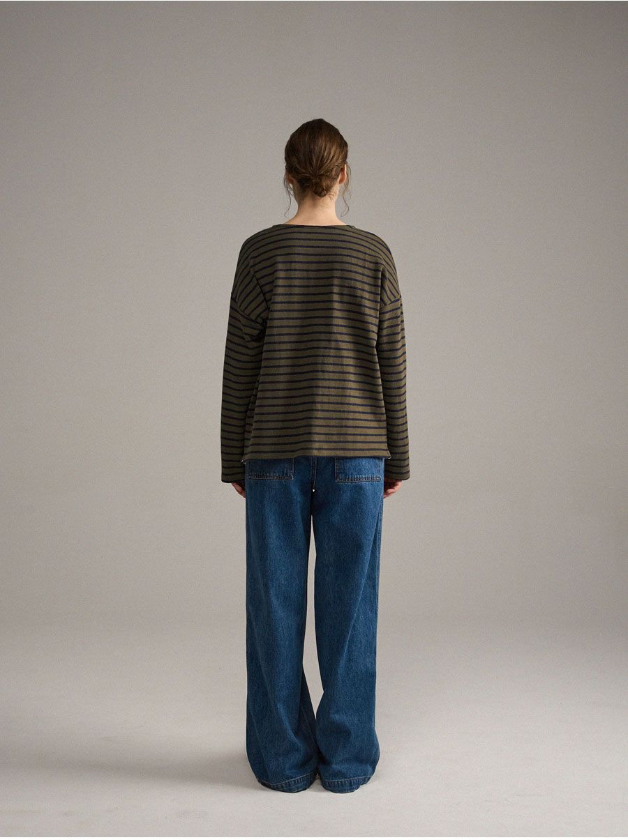 - 피치 가공 특유의 부드러운 터치감과 스트라이프 디테일로 포인트를 더한 티셔츠 입니다