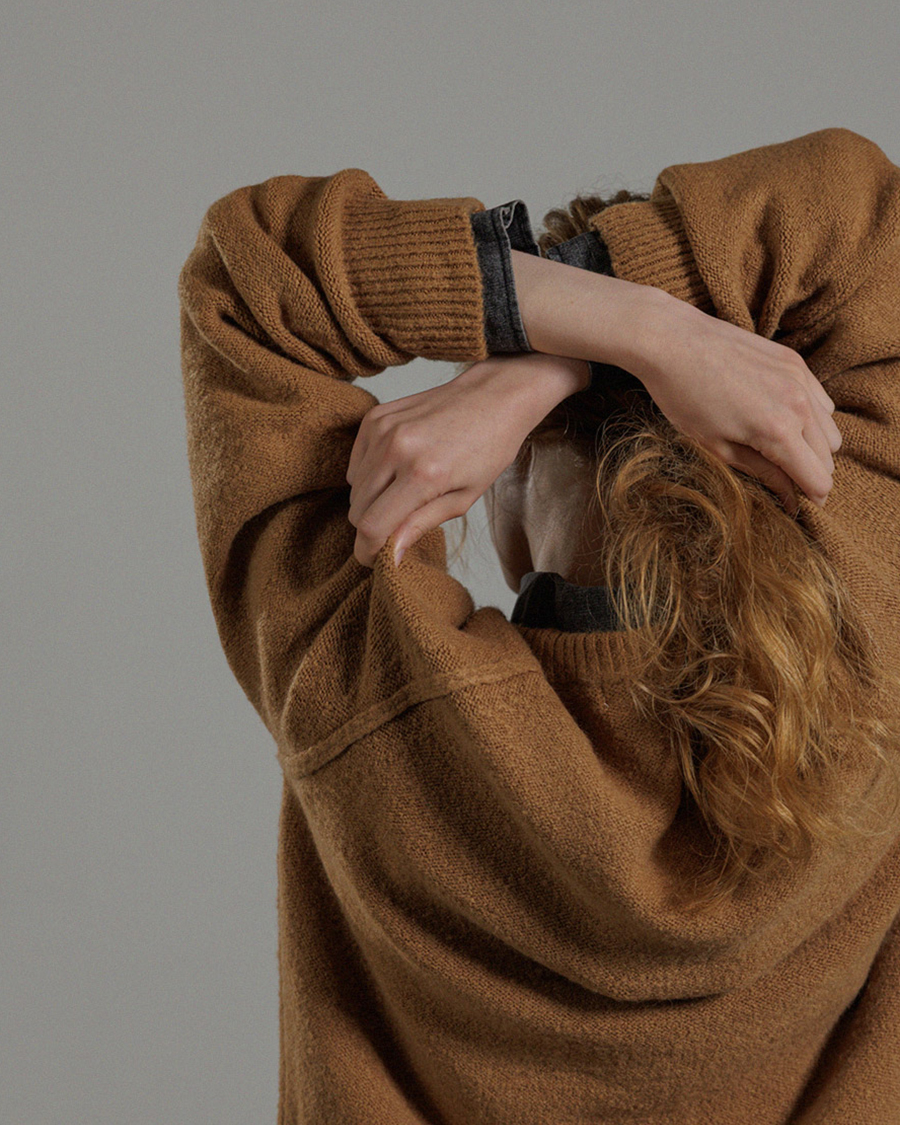 - 5게이지 리버스바닥 조직으로 포근한 텍스처와 안정적인 실루엣을 연출합니다