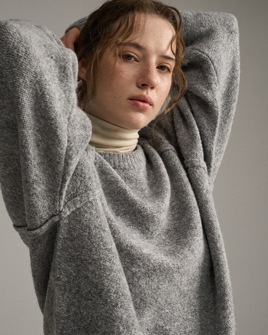 - 5게이지 리버스바닥 조직으로 포근한 텍스처와 안정적인 실루엣을 연출합니다