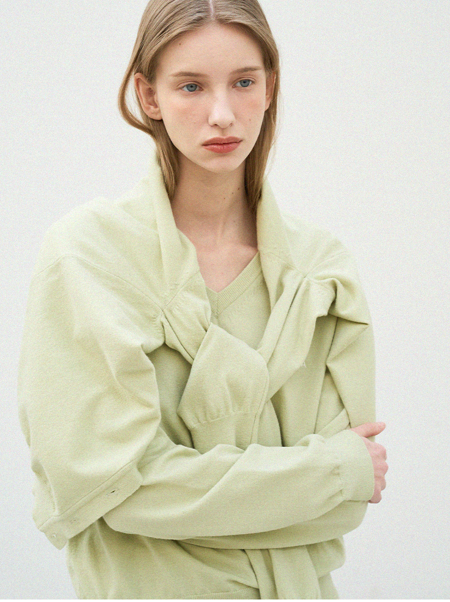 - 자연스럽게 파인 브이넥 라인이 레이어드 시에도 균형감 있는 실루엣을 연출합니다